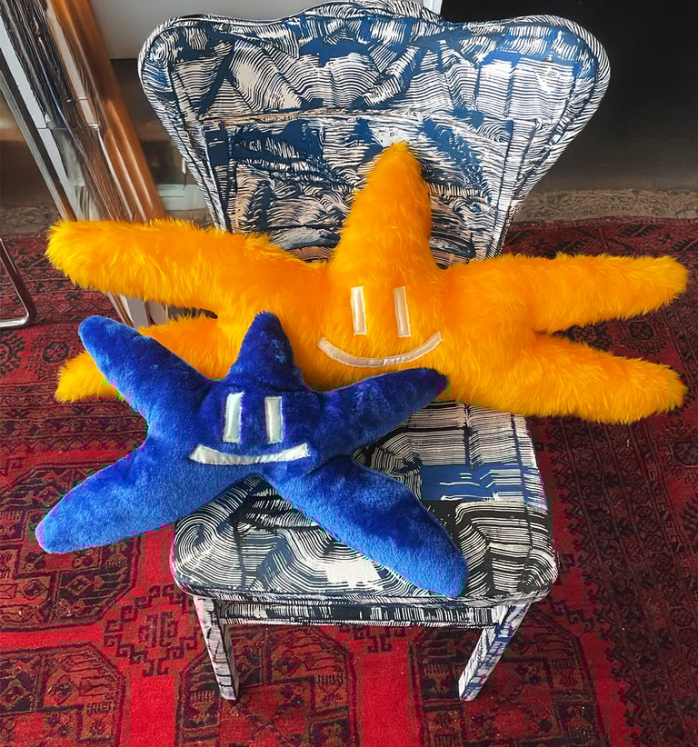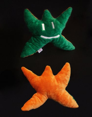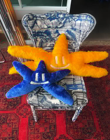 Soft stars in all sizes. From big pillows to tiny bag charms, each one has its own face. I made them to be little companions that hopefully make you smile. Hand-crafted and ready to live on your couch or your keys.
